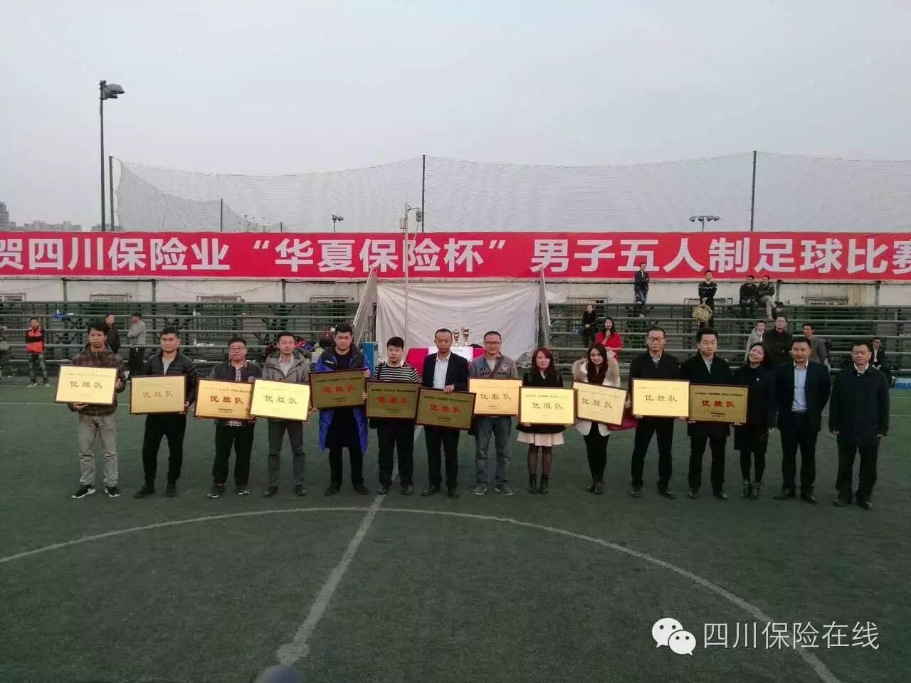 天安人寿四川分公司、中宏人寿四川分公司、华安保险四川分公司、新华保险四川分公司、太平人寿四川分公司、中华联合四川分公司、锦泰保险四川分公司、人保寿险四川分公司、中国人保成都市分公司、国华人寿四川分公司、永安保险四川分公司、浙商保险四川分公司、大地保险四川分公司为本次足球赛打入16强的球队,荣获“优胜队”奖牌。华夏保险四川分公司荣获“最佳组织奖”,泰康人寿四川分公司、信达财险四川分公司荣获“诚信风尚奖”。“金靴奖”被中宏人寿四川分公司球员李卓然斩获,共计进球36粒,稳居射手榜首位。