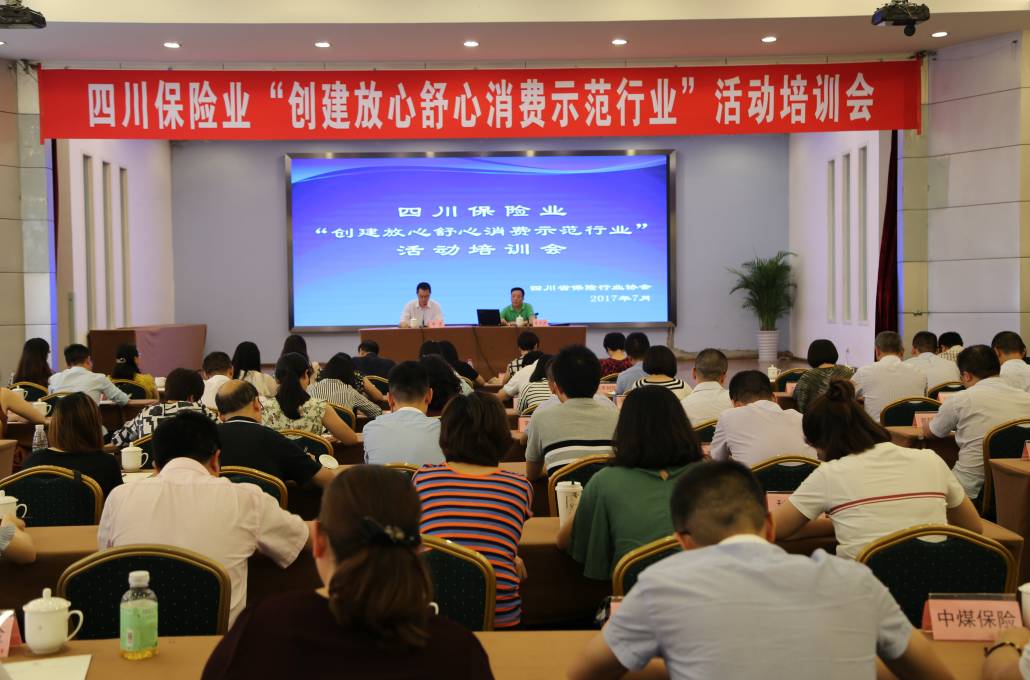 2017年7月27日,四川省保险行业协会举办了四川保险业“创建放心舒心消费示范行业”活动培训会。这是协会为积极响应成都市创建“放心舒心消费示范城市”活动,树立保险行业良好形象,倡导保险让生活更美好的理念而决定组织全行业开展的创建工作之一。省协会89家保险公司会员单位负责消费者权益保护工作的部门负责人到会参训。